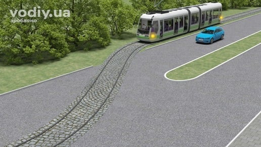 Поза перехрестями, де трамвайні колії перетинають смугу руху нерейкових транспортних засобів, перевага надається трамваю (крім випадків виїзду трамвая з депо).