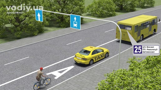 На дорозі зі смугою для маршрутних транспортних засобів, позначеній дорожнім знаком 5.8