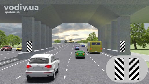 8.5.2 Вертикальна розмітка у вигляді смуг білого і чорного, червоного і білого та жовтого і червоного кольору на дорожніх спорудах та елементах обладнання доріг призначена для зорового орієнтування.
