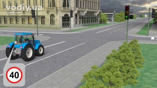 Транспортні засоби, швидкість руху яких не повинна перевищувати 40 км/год або які з технічних причин не можуть розвивати таку швидкість, повинні рухатися якнайближче до правого краю проїзної частини, крім випадків, коли виконується обгін, об’їзд або перестроювання перед поворотом ліворуч чи розворотом.