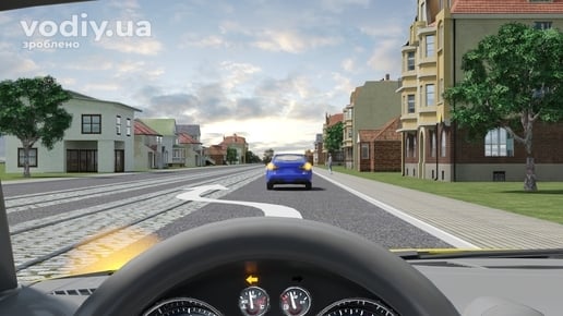 Забороняється виїжджати на трамвайну колію зустрічного напрямку, відокремлені від проїзної частини трамвайні колії та розділювальну смугу.