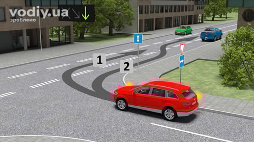 виконати поворот ліворуч необхідно лише відповідно до вимог знаку, тобто, з лівої смуги.
