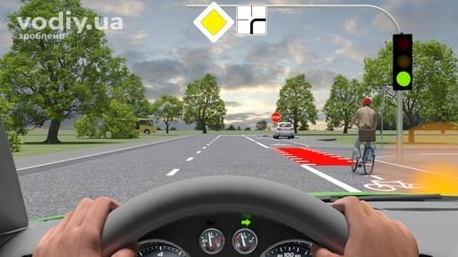 Якщо велосипедна доріжка перетинає дорогу поза перехрестям, велосипедисти зобов’язані дати дорогу іншим транспортним засобам, що рухаються по дорозі.